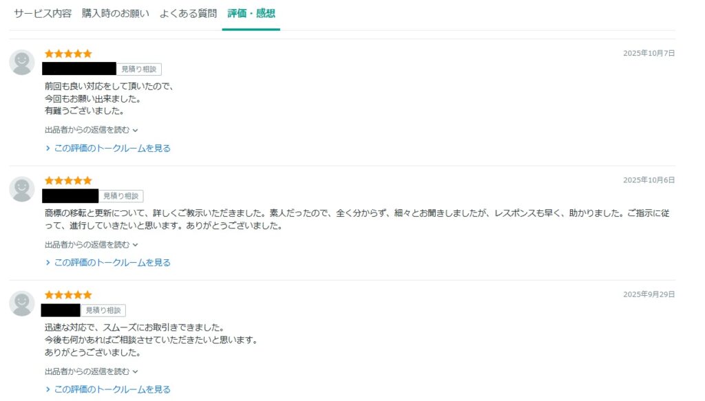 ココナラ経由で、ご依頼いただいたお客様の評価